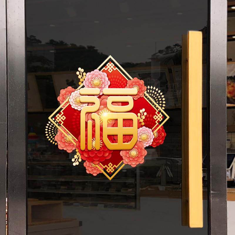 2021贴纸窗花窗贴福字牛年贴福玻璃贴画新年过年门贴装饰春节布置热门设计联盟服务商
