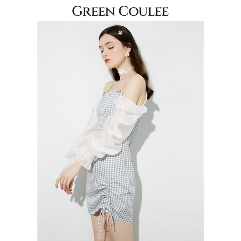 绿古力仙女连衣裙薄款2021年夏季设计感小众蓝色格子法式显瘦裙子热门设计联盟服务商