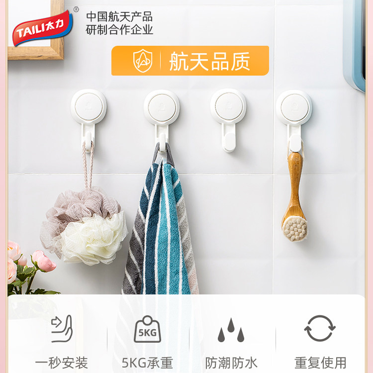 太力吸盘挂钩免打孔浴室无痕强力粘胶卫生间厨房门后墙壁毛巾粘钩热门设计联盟服务商