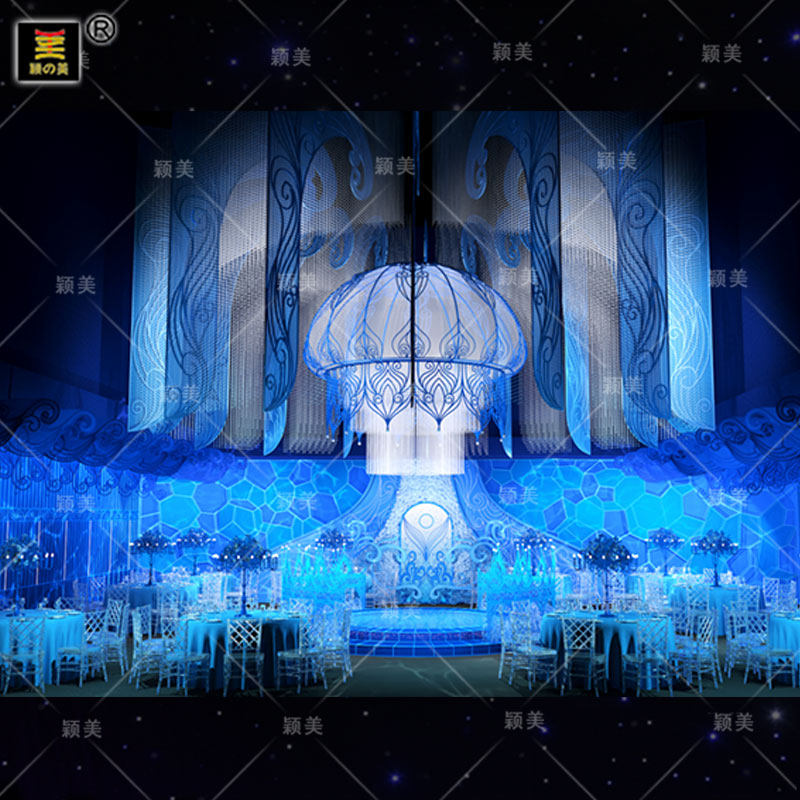 颖美发光拱门酒店宴会厅婚礼堂整套软装花艺道具全套安装设计蓝色热门设计联盟服务商
